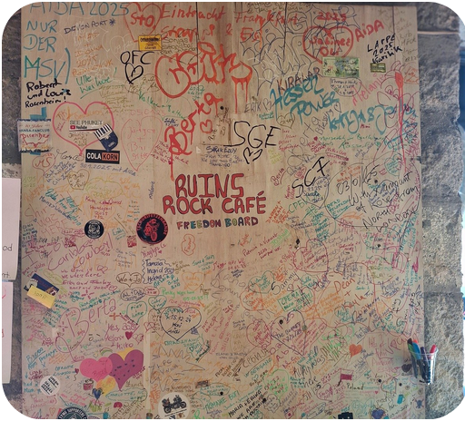 The Freedom Board at Ruins Rock Café: A Wall of Stories, Journeys & Connections